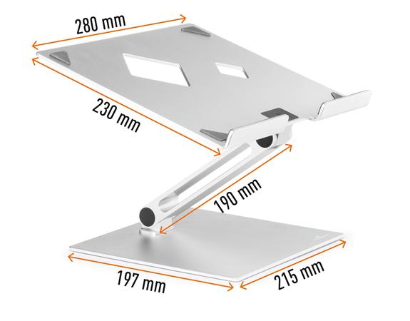 Állítható magasságú asztali állvány laptopokhoz és táblagépekhez. Helyet és rendet teremt az íróasztalon.