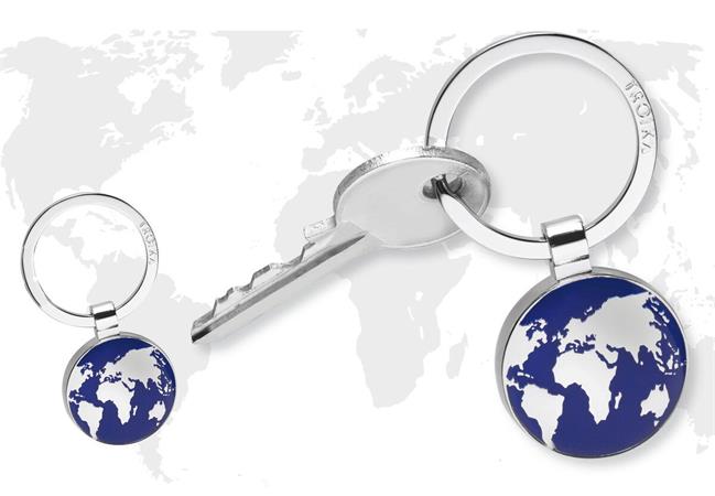 Kulcstartó zománcozott, fényes földgömb mintával